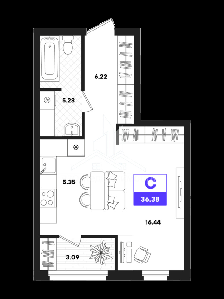 36,38 м²