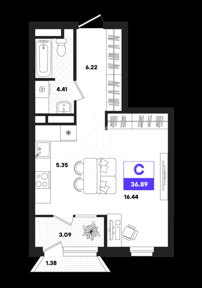36,89 м²